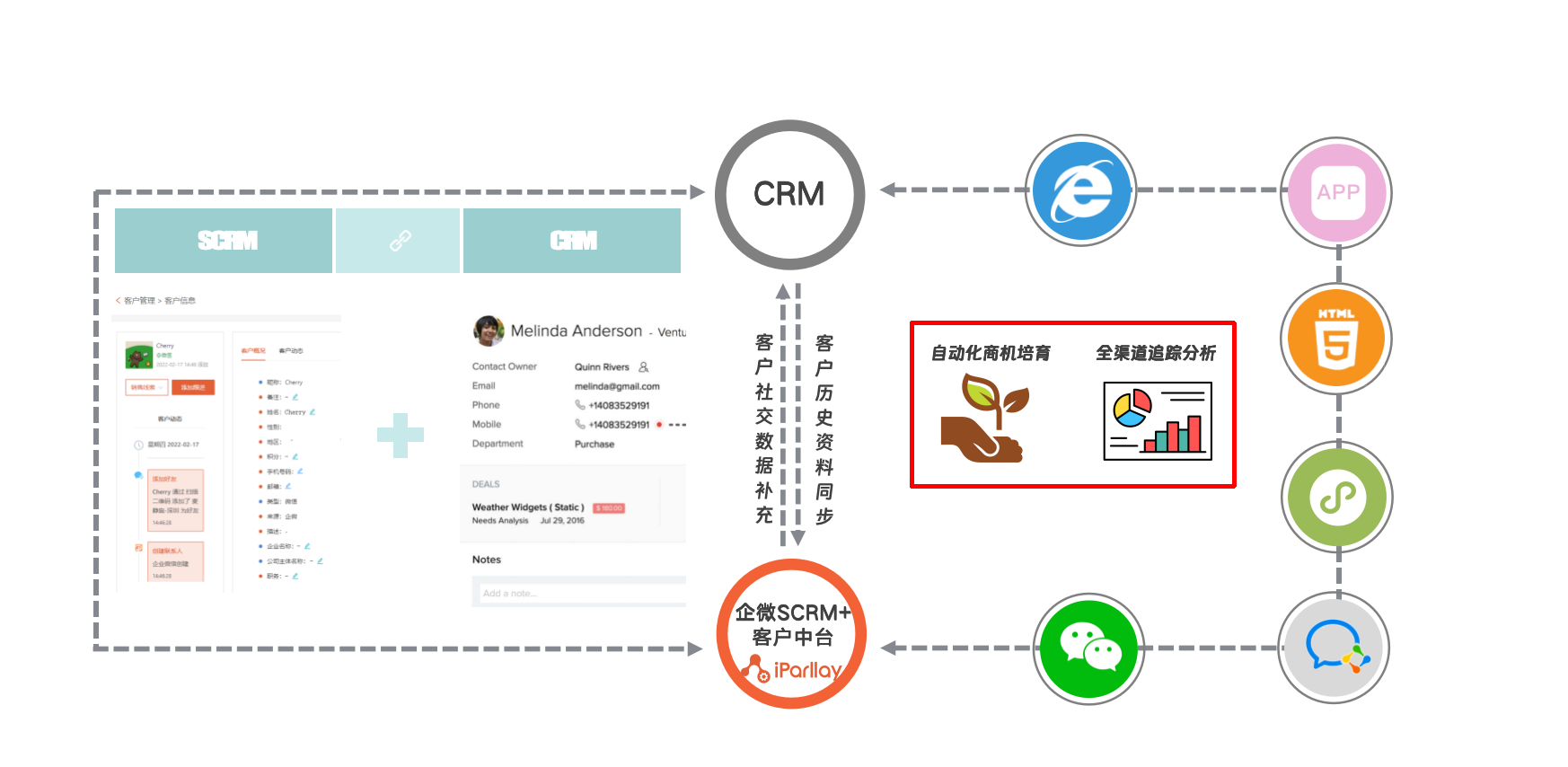 ● 企微插件助力业务员,一键关联好友联系人创建+更新商机 ● BI看板可视化业绩漏斗,轻松生成多渠道ROI分析报表,钱要花在刀刃上!